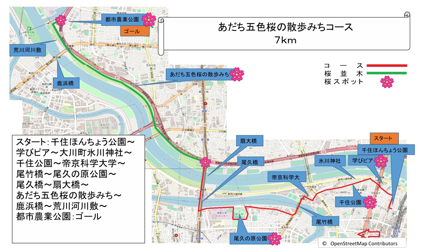 - E−千住・新田エリア 55.あだち五色桜の散歩みちコース