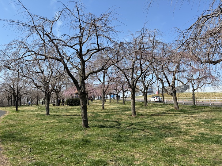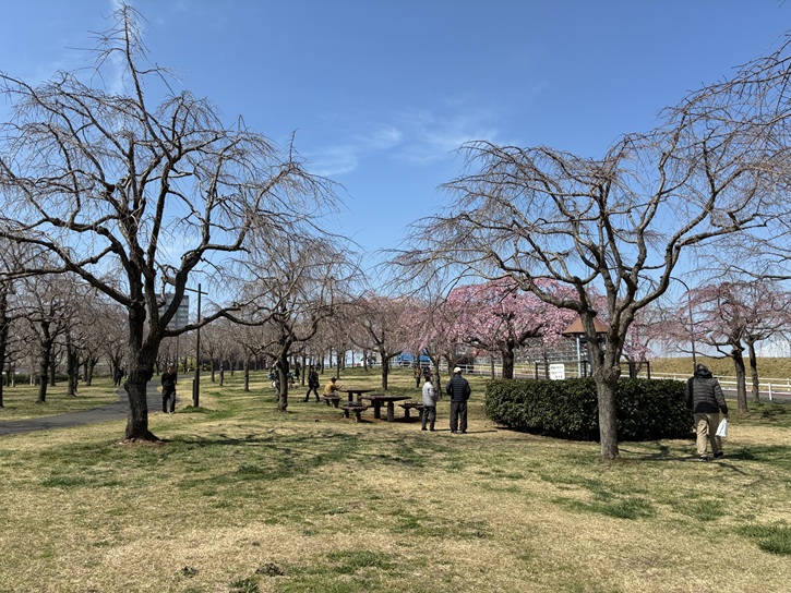 ゴール地点の都市農業公園バス停に着きました。バス停広場の桜だけは満開でした。
