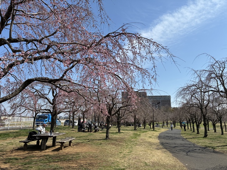 荒川土手側入口にはレストハウスがあり、荒川の河川敷道路から芝川自転車道が分岐する地点として、サイクリング愛好者の休憩ポイントとなっています。せっかくなので、さくらのソフトクリームを頂こうかと思ったのですが売り切れでした。でも、チョコのソフトクリームも美味しかったです。