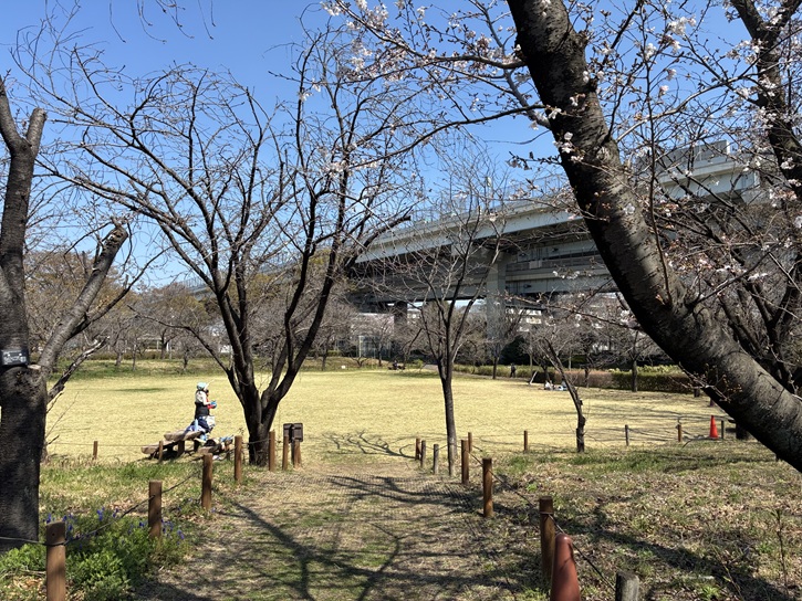 首都高の高架下に面した公園の東側にはひょうたん型の小さな池があります。