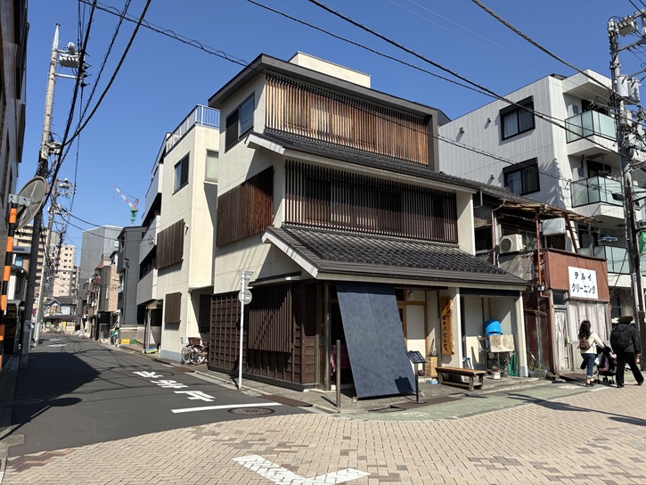 横山家と吉田家の先に「かどやの槍かけだんご」のお店があります。「槍」の字が書かれた藍色の日除け暖簾が目印のお店は、昭和二十三年(1948年)創業という北千住の名店で、看板商品の団子は、最上級の米粉や北海道産の小豆や雑味が少ないザラメといったこだわりの素材を使用しています。みたらしやあんこを絡めやすくするための平らな形もポイントです。昔から変わらぬ味を求めて、遠方からもファンが通います。水戸光圀公のご家来が近くの清亮寺の松の木に槍を立て掛けて団子を食べたという言い伝えが店名の由来とされています。