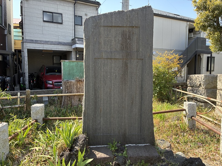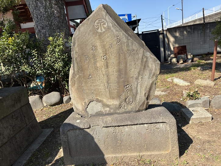 富士塚が現在の地に移築されたのは明治百年の年に当たる昭和四十三年(1968年)でした。この石碑はそれを記念するために建てられたものと思われますが、文字は判読できません。