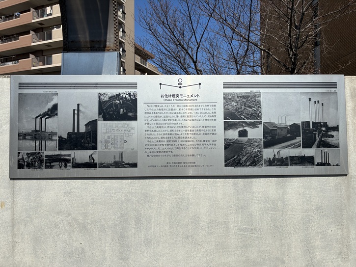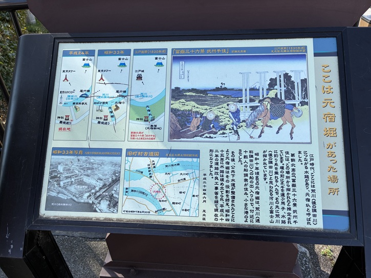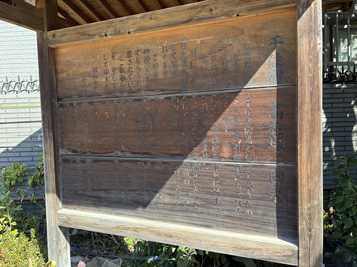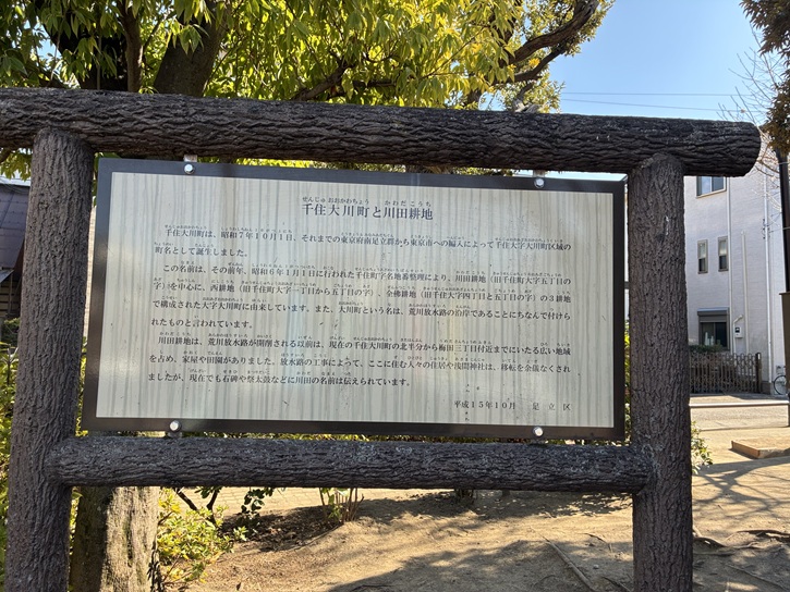 公園のある千住大川町と川田耕地の関わりを記した案内板が立っています。