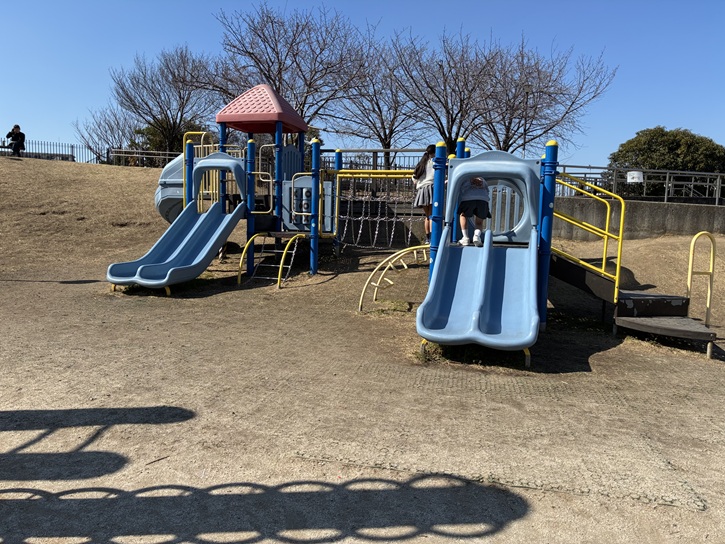 併設の遊具広場には、滑り台や幼児用(3才から6才向け)ブランコや砂場もあります。