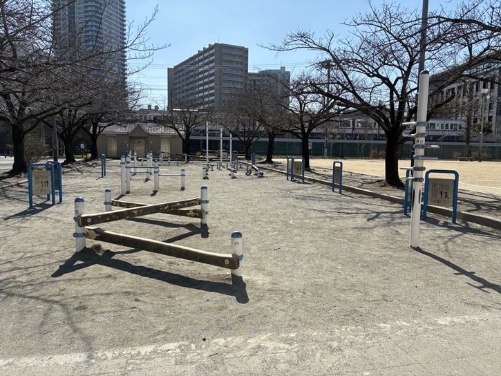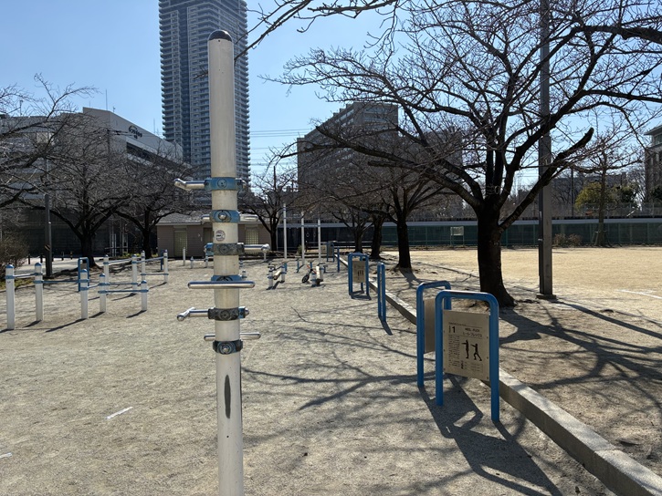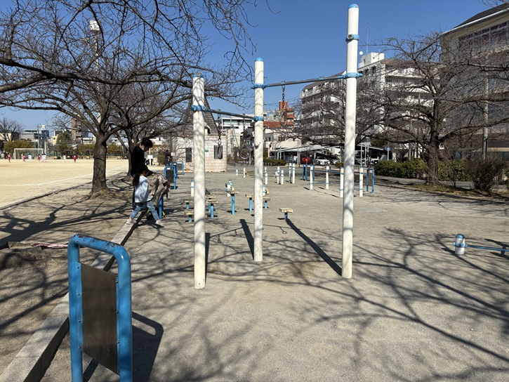 また、大人が利用できるコンテンツも豊富です。ほぼ毎朝ラジオ体操が開催されているほか、高齢者向けの運動イベント「パークで筋トレ」も隔週で開催、健康器具も設置されています。大人から子供まで体を動かせる公園です。