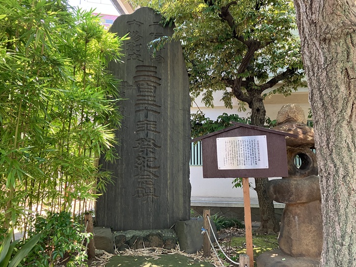 境内には明治三十九年(1906年)の「千住青物市場創立三百三十年祭紀念碑」が残されています。
