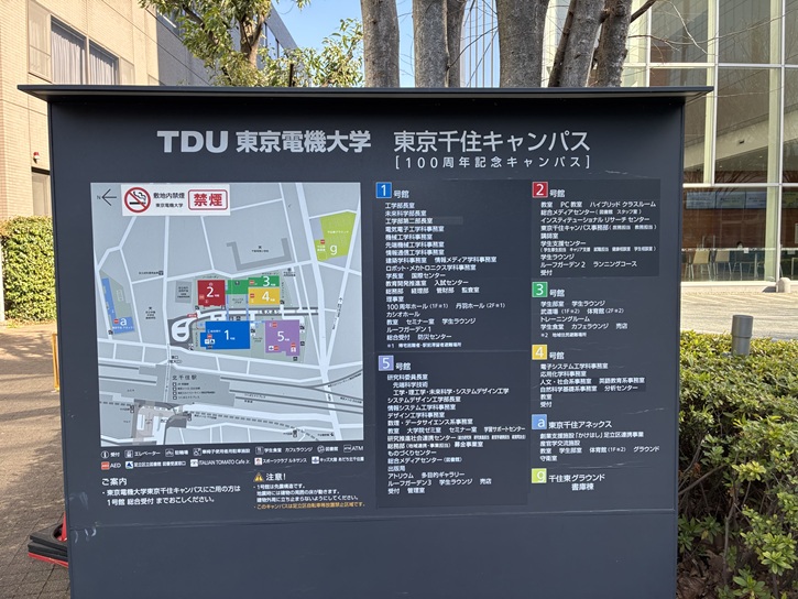 東京電機大学は、明治四十年(1907年)9月11日に東京市神田区で廣田精一と扇本眞吉が創設した電機学校を起源としています。昭和十四年(1939年)に専門学校令により、「東京電機高等工業学校」が開校し、昭和十九年(1944年)に「電機工業専門学校」と改称し、第二次世界大戦後の学制改革に伴い、昭和二十四年(1949年)の学制改革で現在の「東京電機大学」となりました。大学キャンパスは創立からおよそ100年の間、東京の神田地区に立地していましたが、平成二十四年(2012年)に神田錦町から北千住駅東口前の東京千住キャンパスに移転しました。東京千住キャンパスは、26、221uの敷地に、大学本部・1号館・2号館・3号館(体育館・トレーニング室・武道場)・4号館・5号館・東京千住アネックス(体育館)・千住東グラウンド(フットサルコート・テニスコート)が配置されています。令和五年(2023年)時点で、5学部5研究科を設置するなど、理工系の大学として発展しています。