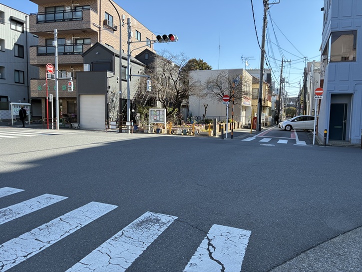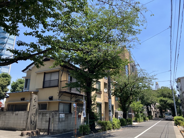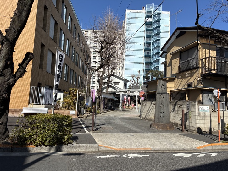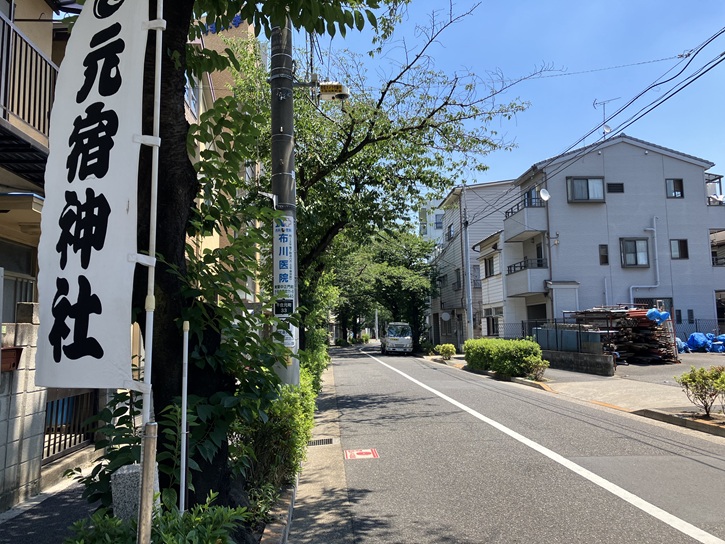 氷川神社の裏門から退出し、住宅地の路地を進みます。