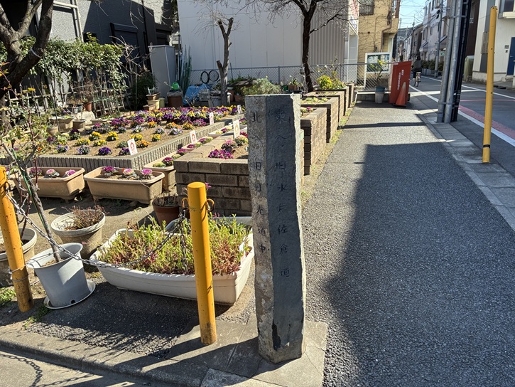 宿場通りの北端の交差点の四つ角の脇に、水戸・佐倉街道の標柱が立っています。10年前にこれを見て水戸街道と佐倉街道の旅に出たのでした。