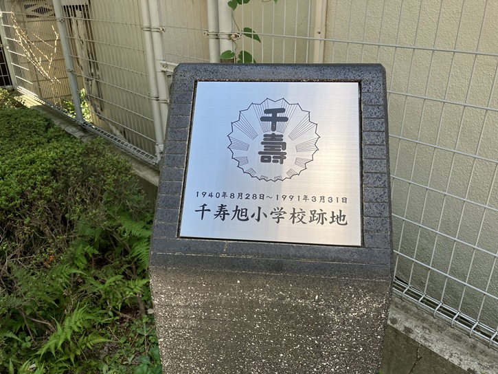 この地には、かって千住旭小学校がありました。千住旭小学校は、昭和十五年(1940年)8月28日に開校し、平成三年(1991年)4月1日に千寿第一小学校と統合して足立区立千住本町小学校が開校しました。千住本町小学校の敷地は千寿第一小学校の跡地を利用したため、千寿旭小学校は廃校となりました。その跡地に学びピア21が建てられたのです。