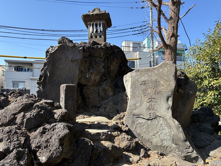 富士塚の高さは3メートルほどあり、山頂には、天保二年(1831年)と記された石祠があります。石祠はいくつかあり、文政七年(1824年)のものには、「丸藤惣同行、富士山三十三度大願成就」と記されています。江戸には、富士講が八百八講あったとされ、千住の講は丸藤千住十三夜同行です。丸藤とは、元講の名前で、千住は地名、十三は、食行身禄行者の命日、法行を夜行うということから講名がつけられました。千住の富士講は、享保期から活動が見られ大正九年(1920年)頃に最も活発に行われていました。千住地域には、大川町氷川神社・千住神社・柳原稲荷神社に富士塚があります。そこに山があるからには登らなければなりますまい。