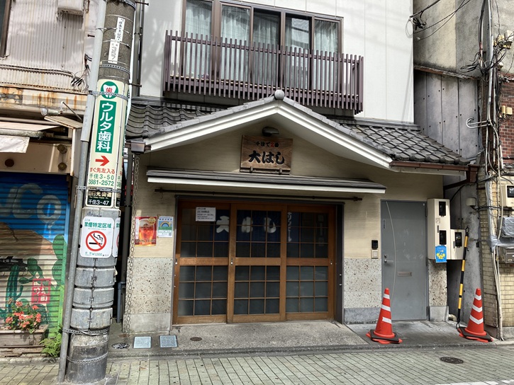 宿場通りを進みます。サンロード宿場通りとの分岐点の北側は「宿場通り」、南側は「宿場町通り」になっています。「千住で2番」のキャッチフレーズで知られる居酒屋の「大はし」は、明治十年(1877年)創業の老舗です。居酒屋評論家の太田和彦さんが名付けたという”東京三大煮込み”の甘辛い醤油味が染み込んだ牛肉の煮込みが名物で、他にも旬の鮮魚が味わえる大衆酒場です。「やってます」の看板はこの店が発祥だそうです。