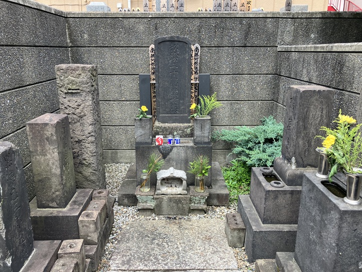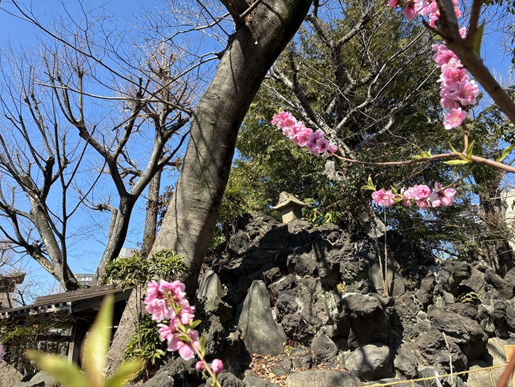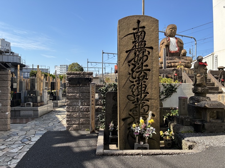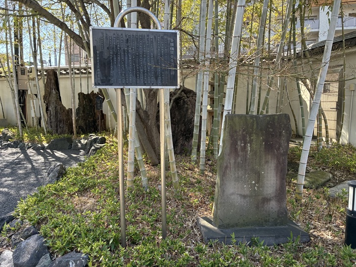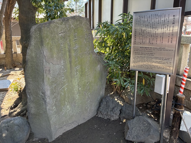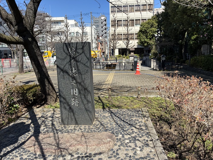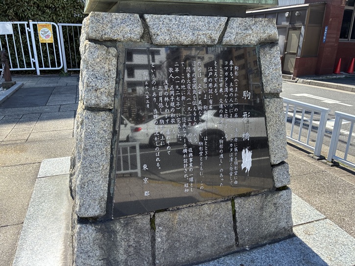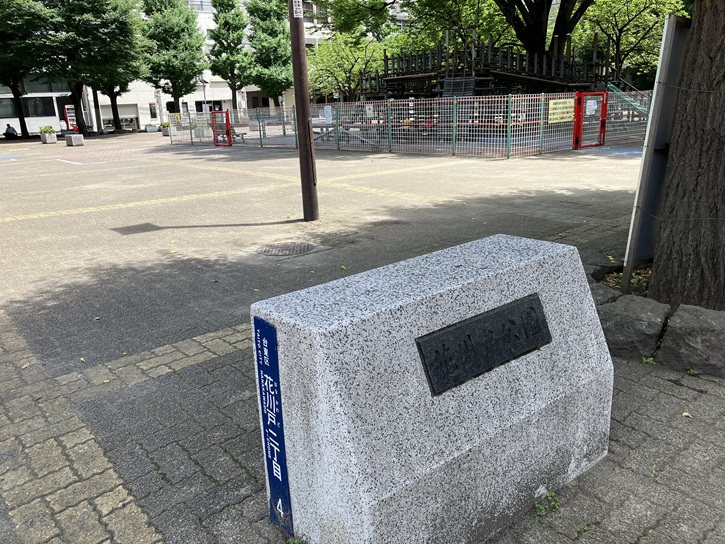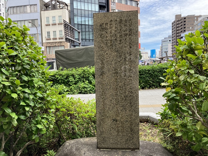 首都高1号上野線の手前に、小津和紙の建物があります。植え込みの中に、石碑が建っています。