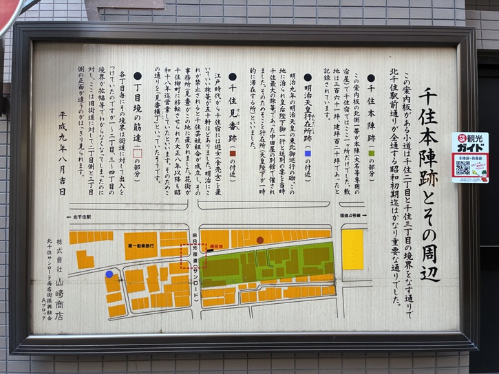 壁には、千住宿本陣跡の案内板が架けられています。