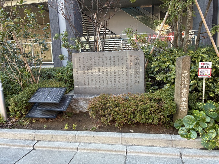 千住ザ・タワーの植え込みの中に、森鴎外旧居橘井堂跡の石碑が建っています。