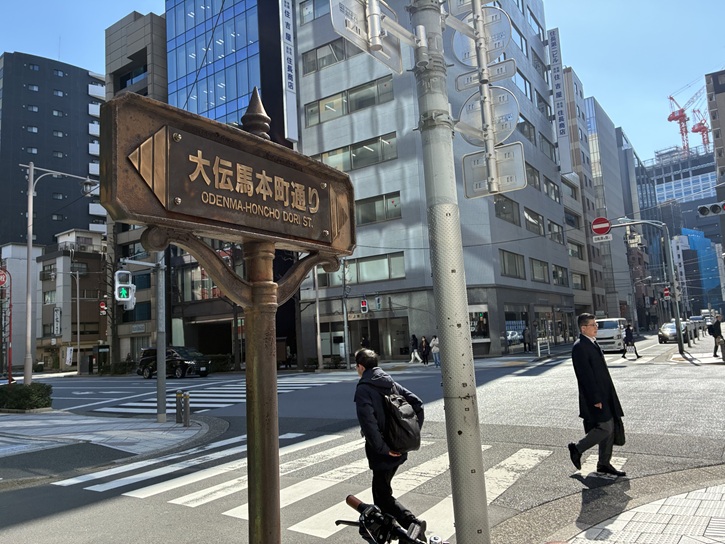 室町三丁目南交差点を左折して中央通りに出ます。「日本橋室町」の地名は、京都の室町にならったという説と、商家が多く集まっていて、その土蔵(室)が建ち並んでいたためという説があります。