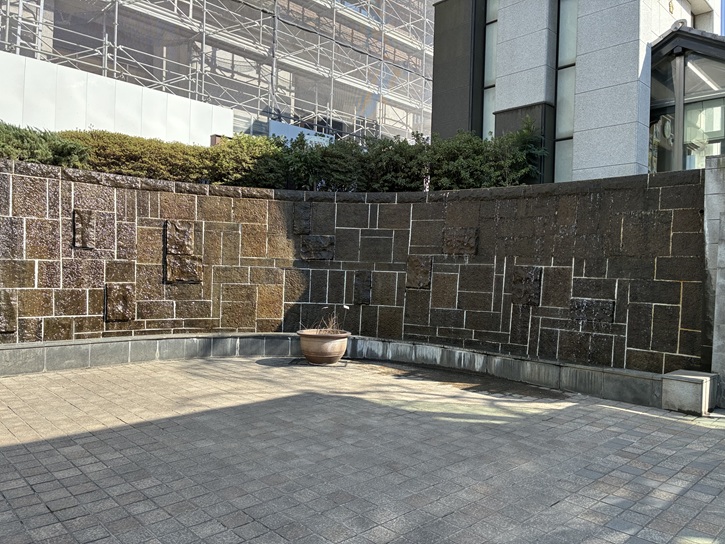 滝の広場には、滝をイメージした壁が設けられています。