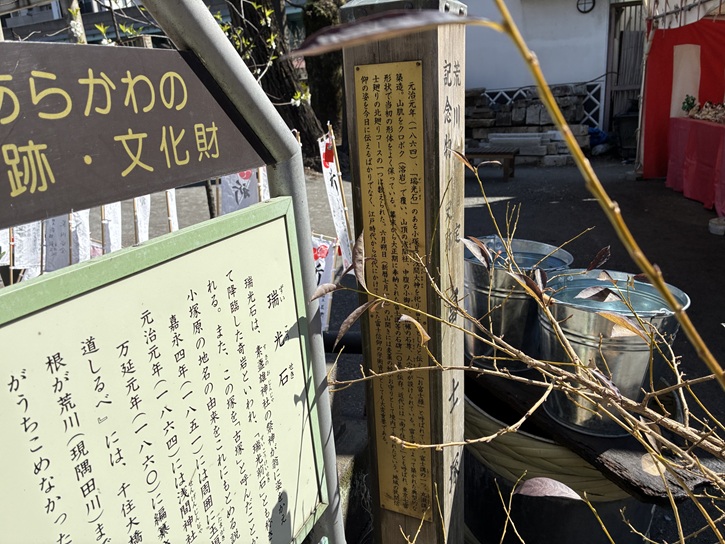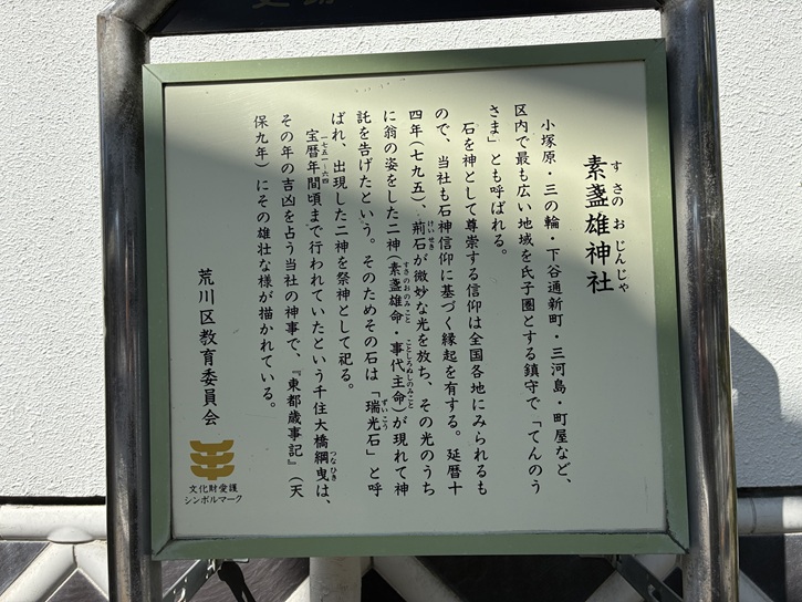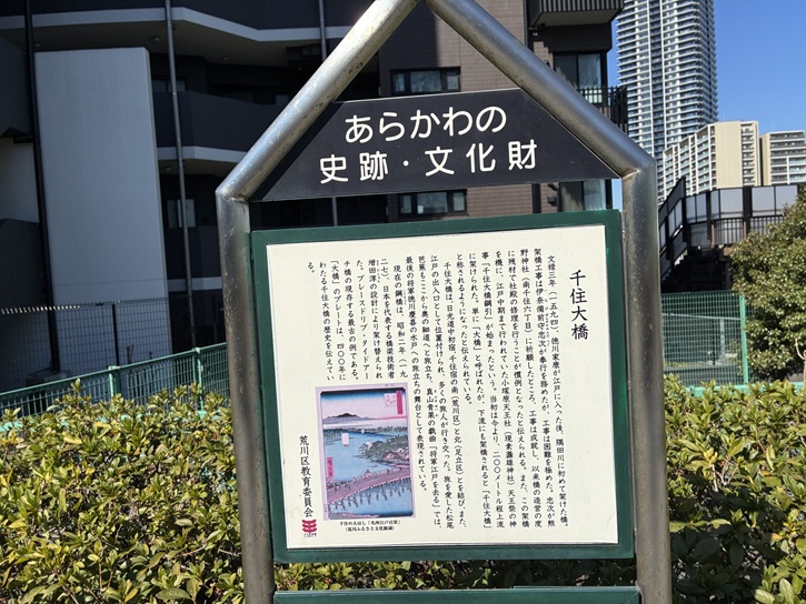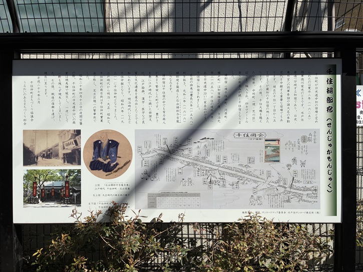 千住の地名の由来を記した案内板が立っています。