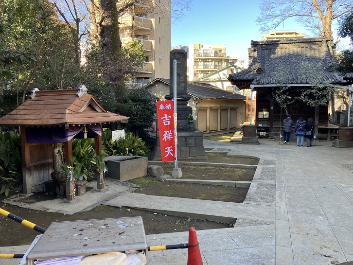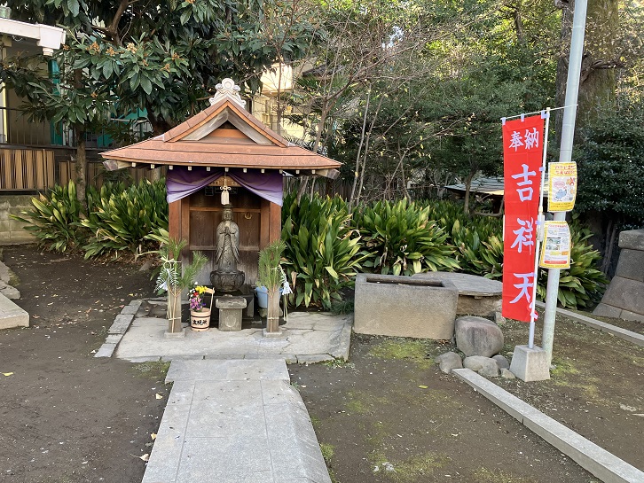 雑司が谷七福神のうち、唯一文京区にあります。「清土出現所」という名があり、雑司が谷の鬼子母神堂に祀られる鬼子母神像はこの地から出土しました。地元では親しみを込めて「清土鬼子母神」と呼ばれています。吉祥天は鬼子母神の娘神です。仏教では毘沙門天の妃といわれ、福徳安楽を与える天女です。境内には左手に如意宝珠を持った吉祥天像があります。