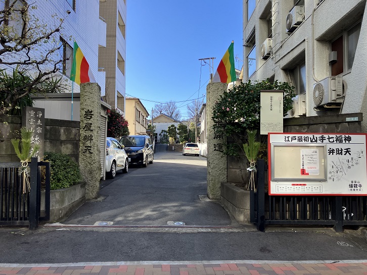 2023年の七福神詣の四番目は山手七福神です。山手七福神は江戸から目黒不動・瀧泉寺への参詣道沿いに祀られた七福神を巡拝するもので、江戸で最初の七福神霊場とされています。新宿山ノ手七福神との混同を避けるため「元祖山手七福神」とも呼ばれますが、各寺院の表示や参詣の栞などでは「江戸最初・山手七福神」としています。