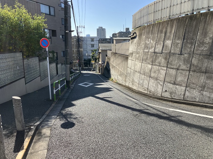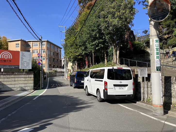 蛙坂下から丸ノ内線の高架下を左手に回り込むと、拓殖大学の縁に沿って”く”の字のように曲がった緩やかな坂が上がっています。