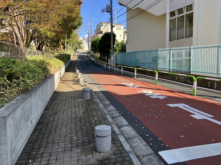 区立五中前交差点から文京江戸川橋体育館の横を通って小日向神社前まで緩やかな坂道が延びています。