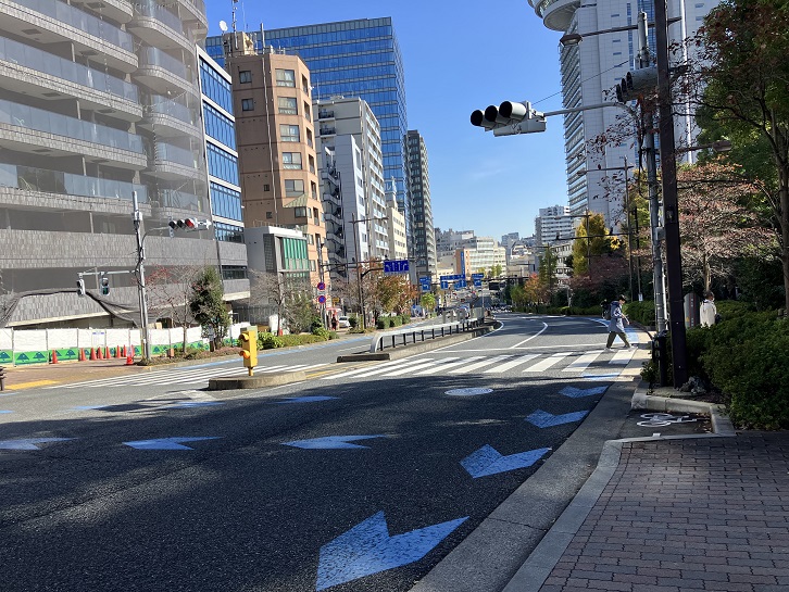 藤坂を上り、春日通りに出ますと、反対側には文京区の桜の名所として知られる播磨坂が続いています。