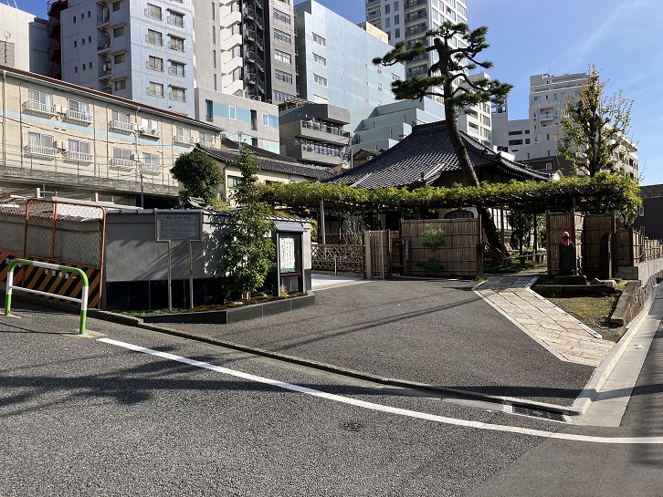 丸ノ内線の高架下の右側のトンネルを通った先に藤寺があります。藤寺は傳明寺の通名です。傳明寺は寛永元年(1624年)に創建され、徳川家光が鷹狩りの際に傳明寺の藤を上覧し、藤寺と呼ぶよう命じたといわれています。