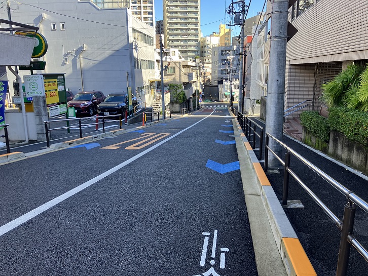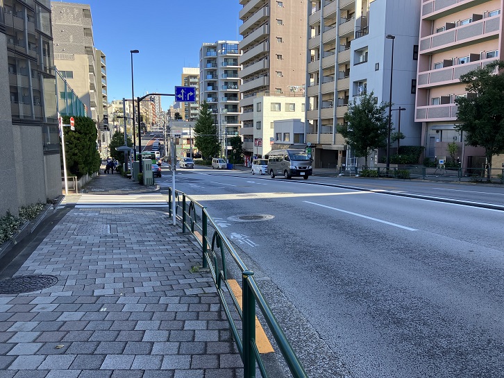不忍通りは大塚三丁目交差点で春日通りと交差した先から長い下り坂が続いています。