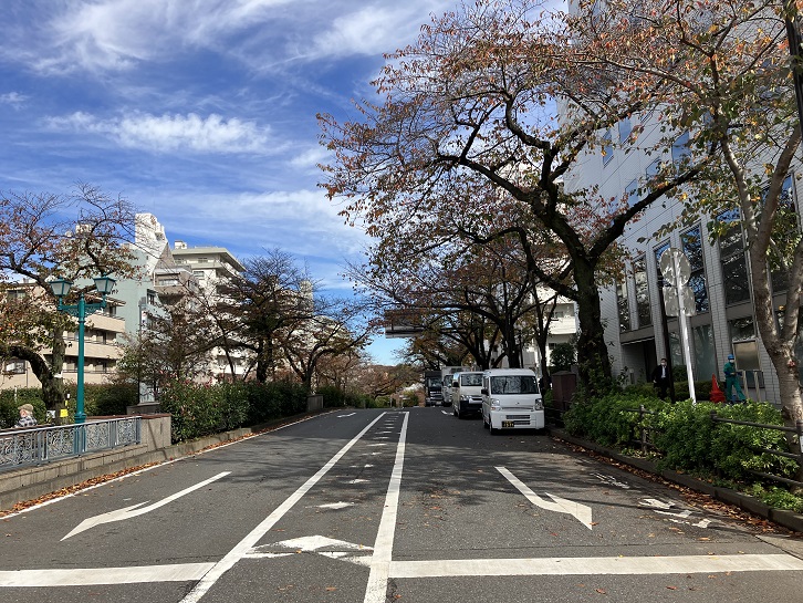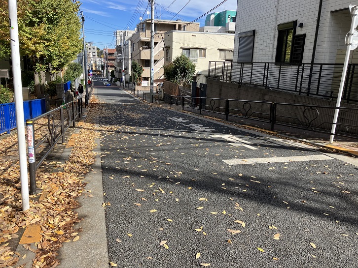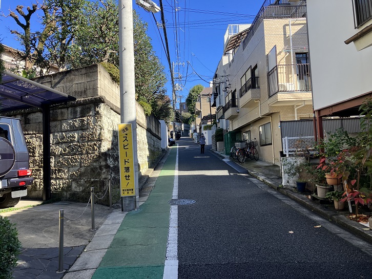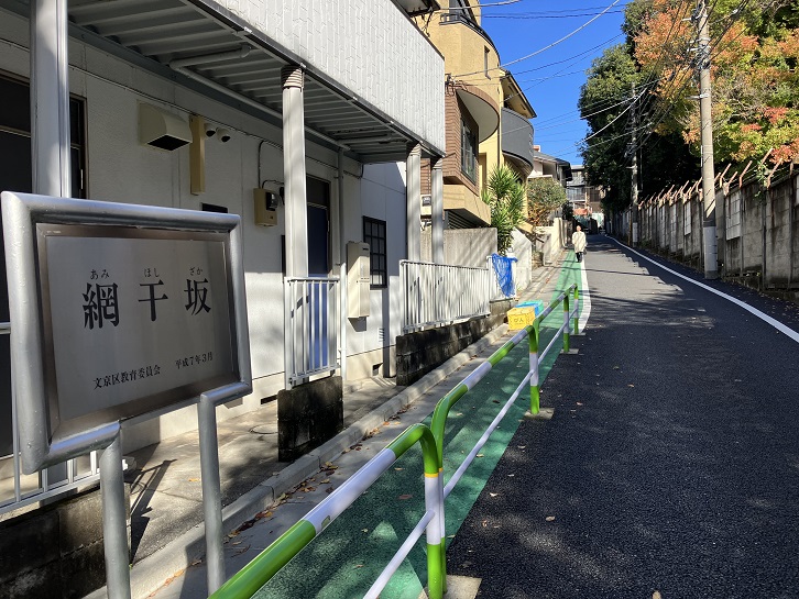 伝通院の隣にある淑徳学園の前から左にカーブする下り坂があります。