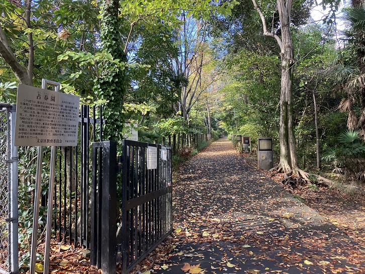 この辺りは、幕末までの200年ほどの間、徳川光圀の弟を藩祖とする陸奥守山藩松平家の上、中屋敷の地であった。占春園は、この屋敷内にひらかれた庭園の名残りである。「林には鳥、池には魚、緑の竹と赤い楓、秋の月、冬の雪」と、四季それぞれの庭の美しさでその名が知られ、当時の江戸三名園の一つに数えられていた。明治三十六年(1903年)、東京高等師範学校(戦後の東京教育大学、筑波大学に改組)が、湯島からこの地に移り、占春園は、校地の一部になった。現在は、筑波大学附属小学校の自然観察園として、同校が管理し、区民にも公開されている。