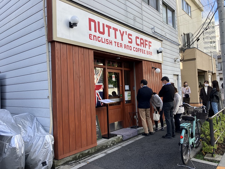 吹上坂から三百坂に向かう途中の路地に面して小さなお店があり、入店待ちの行列ができています。「NUTTY’S CAFF(ナッティーズ カフ)」という店名で、2019年1月に誕生したカフェ好き絶賛のお店です。Cafe(カフェ)ではなく、Caff(カフ)という聞き慣れない言葉ですが、CaffはイギリスでCafeの略語で、軽食もある気軽なカフェのことだそうです。ちなみに、Cafeはフランス語表記で、Caffeはイタリア語表記なのだそうです。店名からしてイギリス人が経営しているお店のように思えますが、日本人のご家族が経営されていて、細部まで妥協せずこだわりぬいた珠玉のスイーツは娘さんが担当されているそうです。中でも人気は完成に半年以上かかったという「バターミルクパンケーキ」だそうです。男の人も並んでいるのが人気の高さを示していますね。
