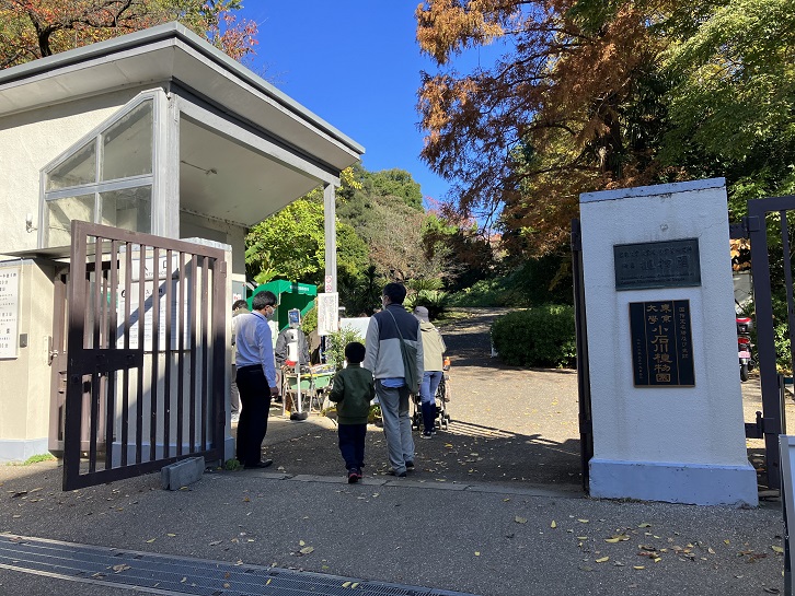 伊賀坂から小石川植物園に向かいます。この辺りの町域は高台にあり、路地が迷路のように入り組んでいます。あっちに行っては行き止まり、こっちに来ても行き止まりといった状態で、なかなか小石川植物園には辿り着けません。結局、高台にある是照院の下をぐるりと大回りしてようやっと小石川植物園の正門前にやって来ました。小石川植物園の正式な名称は、東京大学大学院理学系研究科附属植物園といい、植物に関する様々な研究を行っている東京大学の附属施設のひとつですが、一般にも公開されています。元々は江戸幕府によって開園された小石川御薬園があったところです。幕府は人口が増加しつつあった江戸で暮らす人々の薬になる植物(薬草)を育てる目的で、寛永十五年(1638年)に麻布と大塚に南北の薬園を設置しました。その後大塚の薬園は廃止され、貞享元年(1684年)に麻布の薬園を五代将軍徳川綱吉の小石川別邸に移設したものが小石川御薬園になりました。小石川御薬園内には江戸の貧病人のための診療所(小石川養生所)が設けられ、山本周五郎の連作短編小説「赤ひげ診療譚」や、この作品を映画化した黒澤明監督作品の「赤ひげ」の舞台となりました。また、甘藷先生こと青木昆陽が飢饉対策作物として享保二十年に甘藷(サツマイモ)の試験栽培を行った場所としても知られています。