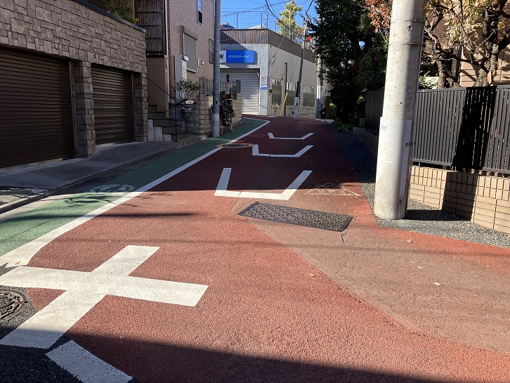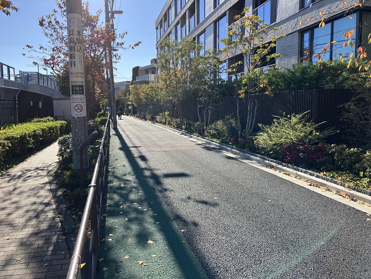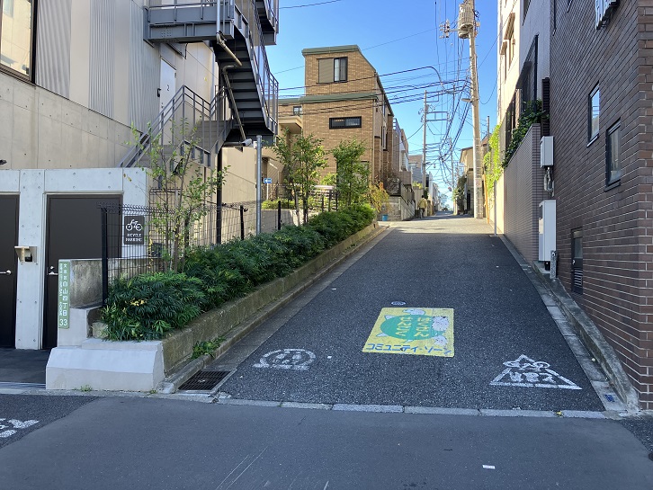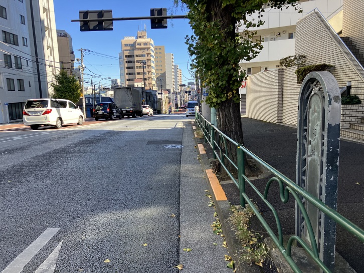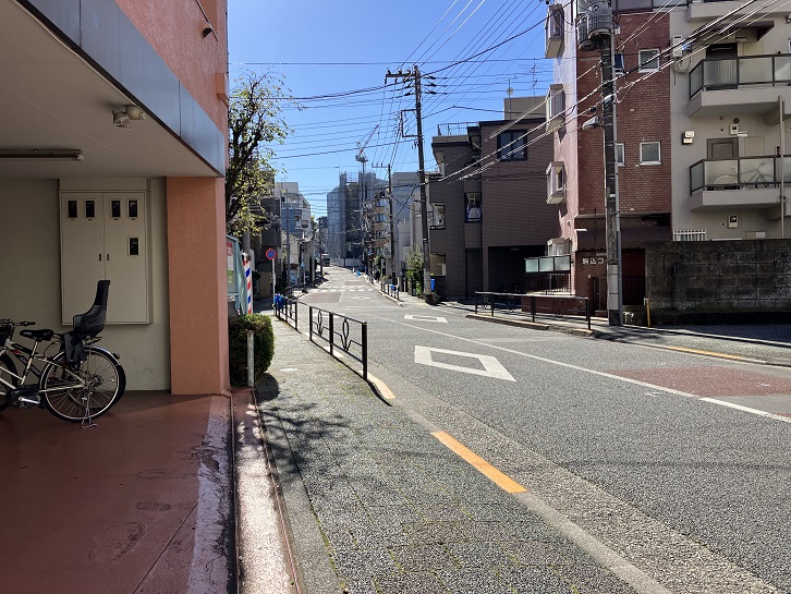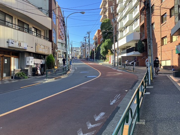 上富士前交差点を右折した先の不忍通りが下り坂になっています。
