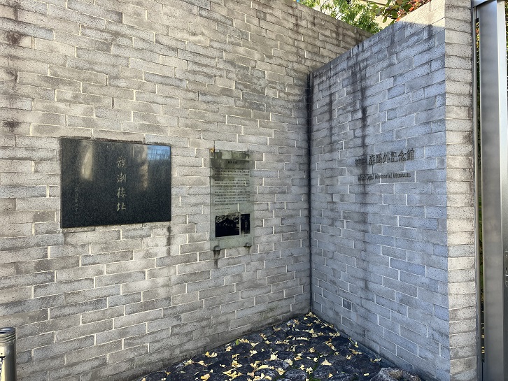 藪下通りに入った直ぐ先の右手に観潮楼跡と表示されたプレートをはめ込んだ石塀が高く聳えています。現在は文京区立の森鴎外記念館になっています。