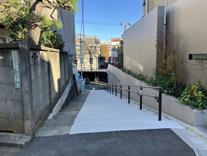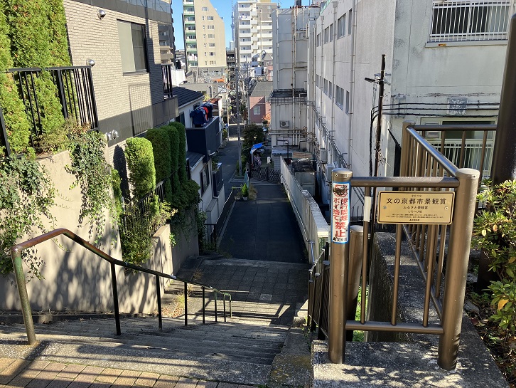 森鴎外外記念館の向かいに、崖下から上ってくる急階段があります。
