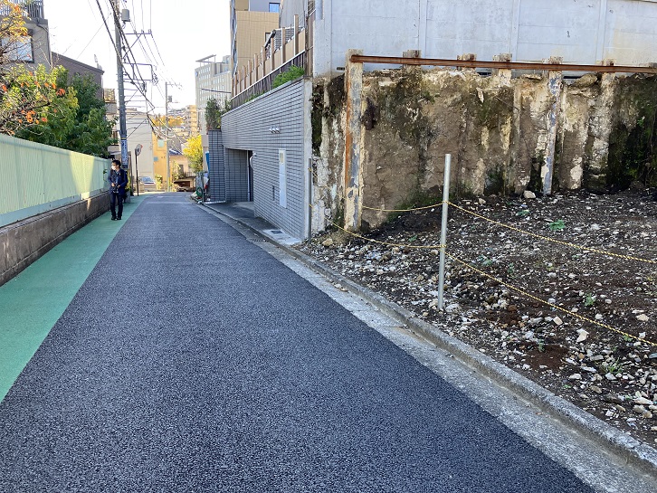 現在はこの石塀は殆ど取り壊され、マンション側はコンクリート塀、民家側は建て替え工事中でどうなるか分かりませんが、恐らくこちらもコンクリート塀になるのではないかと思われます。土台の強度の点から致し方ないかもですね。
