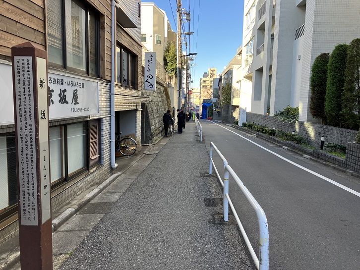 都営地下鉄新宿線の曙橋駅の手前から、荒木町と舟町の境界を通って外苑東通りに抜ける細い上り坂があります。