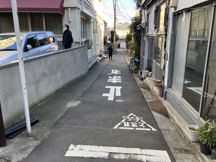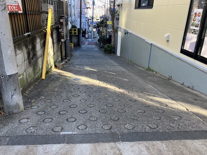比丘尼坂は、交差する路地のところで小さくクランク状に折れているのが特徴です。