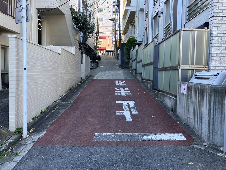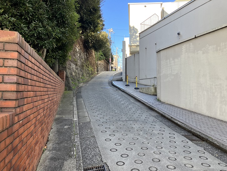 若宮八幡神社の西側の住宅街の間を通る緩やかな直線の短い坂があります。