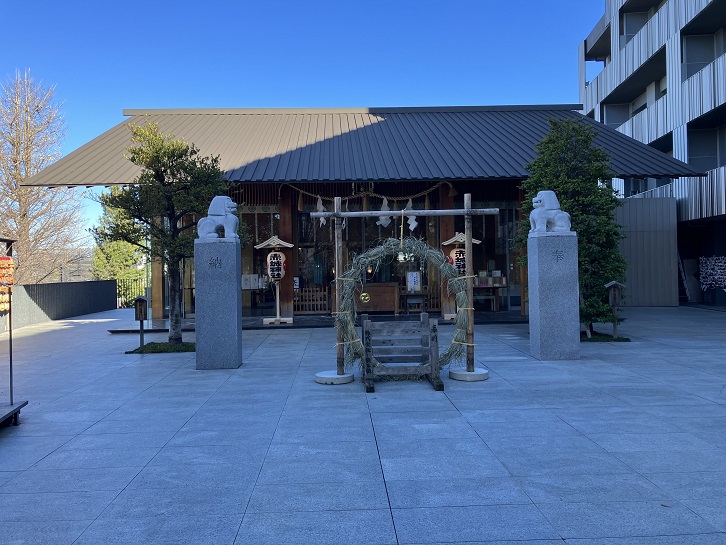 本殿の前には、年末の風物詩である茅の輪が今年の穢れを落とす参拝客を待っています。