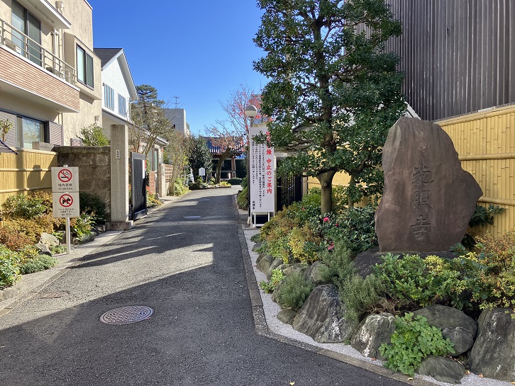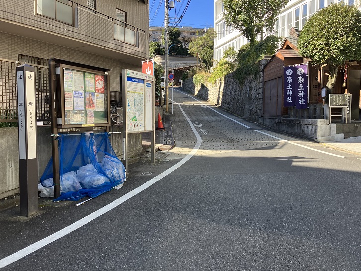 善国寺の脇から、途中で右方向に曲がった坂が上がっています。