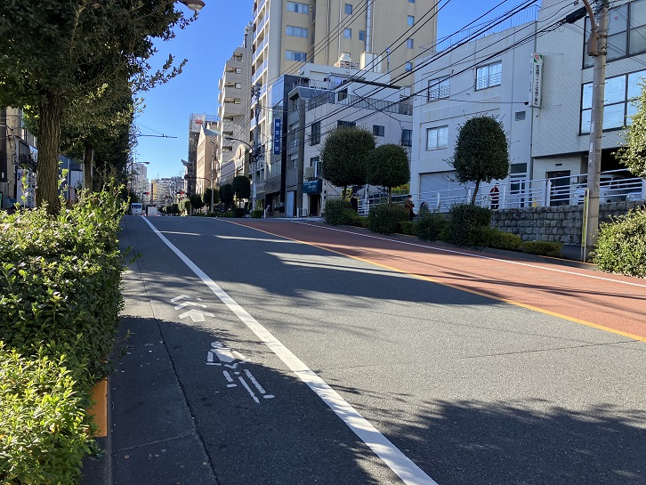 大久保通りは南蔵院の前から南西に向かって緩やかな上り坂になっています。