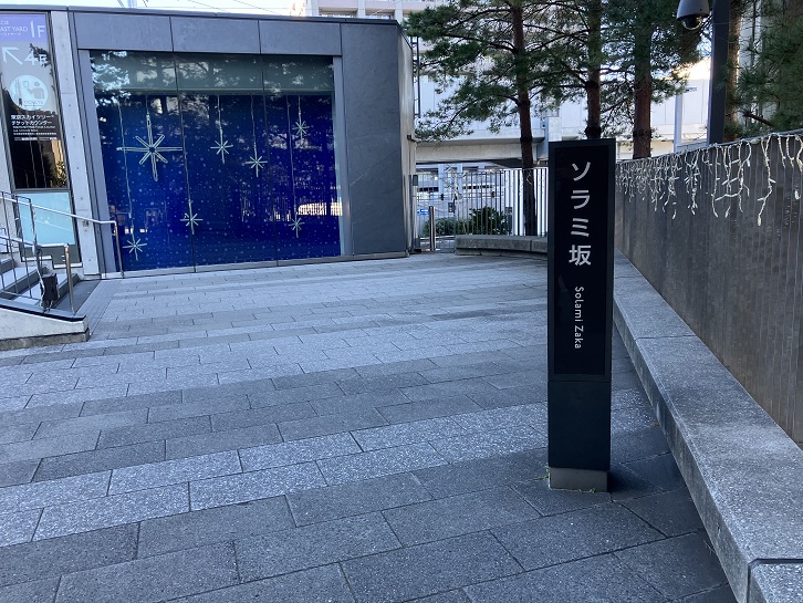 ソラミ坂は長さが約90mほどあり、複雑に曲がりながら途中に踊り場や広場を挟んで7つに分かれる階段です。東京スカイツリーの東側から東京ソラマチの4階まで上る階段で、合計で約120段あります。階段の横には並行してエスカレーターが併設されています。