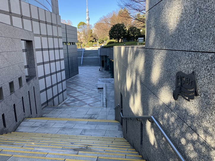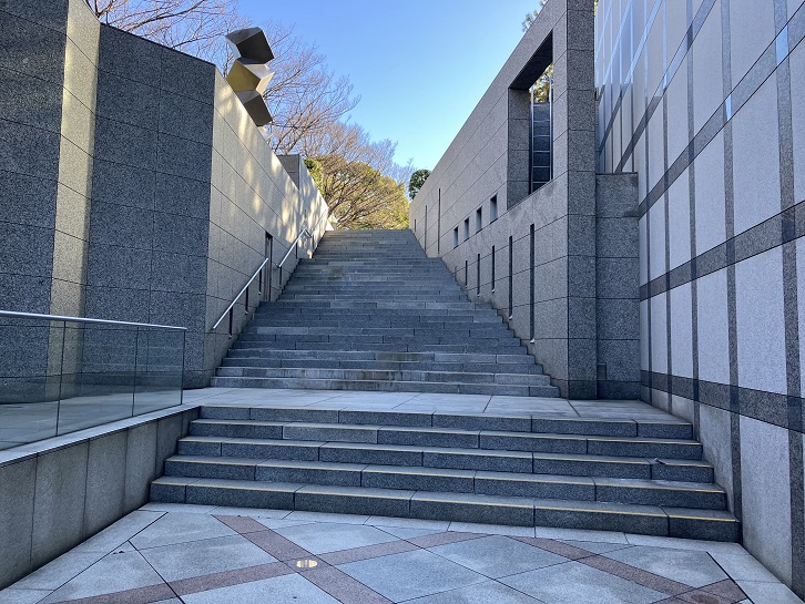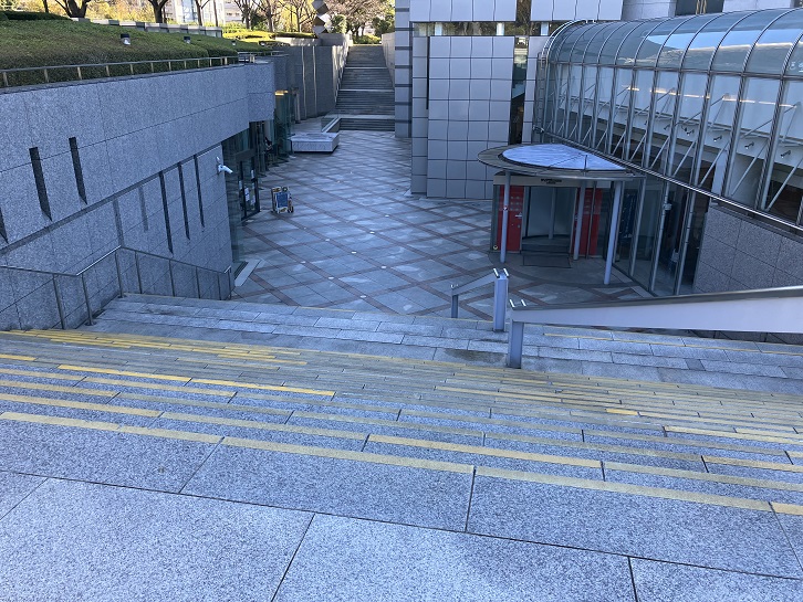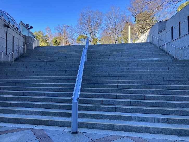 ドレミ坂は、江東公会堂構内の北東側にある長さが約20mほどの緩やかで幅の広い下り階段です。