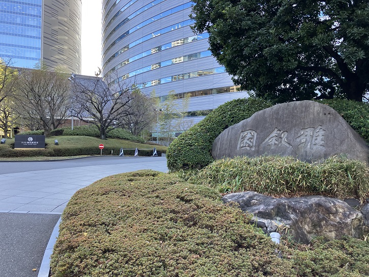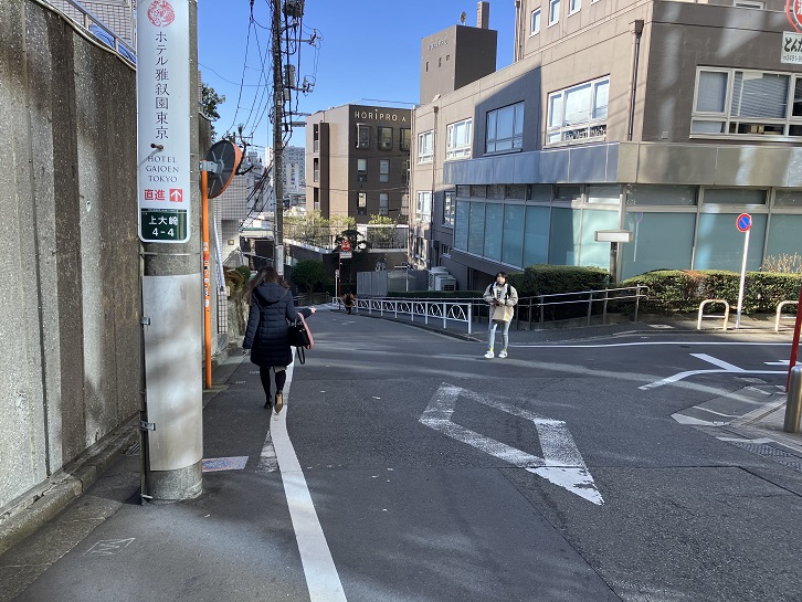 行人坂下の左手には広大な敷地のホテル雅叙園東京があります。同じ敷地に建つアルコタワーは雅叙園のシンボル的建物です。雅叙園は明治十三年まで此の地にあった明王院の敷地跡の一部を占めています。