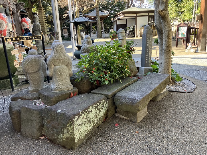 本堂の前に石像が何体か並んでいます。
