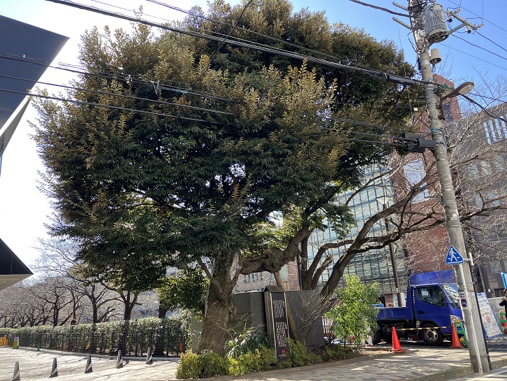 雅叙園の敷地の端っこに椎の木の古木が立っています。