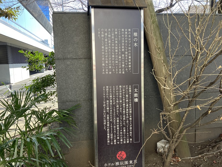 椎の木はブナ科の広葉常緑樹で、目黒区の木として指定されている。椎の木は浮世絵師歌川(安藤)広重(1797年〜1858年)画の【江戸名所百景−目黒太鼓橋夕日の岡】・安政四年(1857年)中にも描かれている。水と緑に恵まれたここ夕日の岡一帯は、遠く富士の頂をのぞむ美しい自然の名勝として椎の木と共に親しまれてきた。