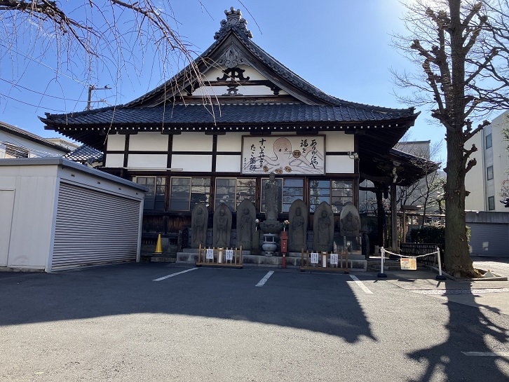 天安二年(858年)慈覚大師の開山で、本尊は大師の自作と伝えられ3匹の蛸にささえられる蓮華座に乗る薬師如来像です。俗に蛸薬師とよばれ疫病除の仏として人々にあがめられています。この寺の所有に浮世絵師鳥居清長(1752年〜1815年)筆の歌舞伎十八番の一の出し物を描いた「矢の根五郎」の額がありますが、国の重要美術品に認定され国立博物館に保管されています。境内には、徳川二代将軍秀忠の側室、お静の方がわが子保科正之の栄達を祈願し、大願成就のお礼に奉納された「お静地蔵」が建てられ、また、三代将軍家光が遠州の秋葉大権現を勧請した「秋葉大権現」が併祀されています。この他に江戸時代の地蔵尊や庚申塔が建っています。